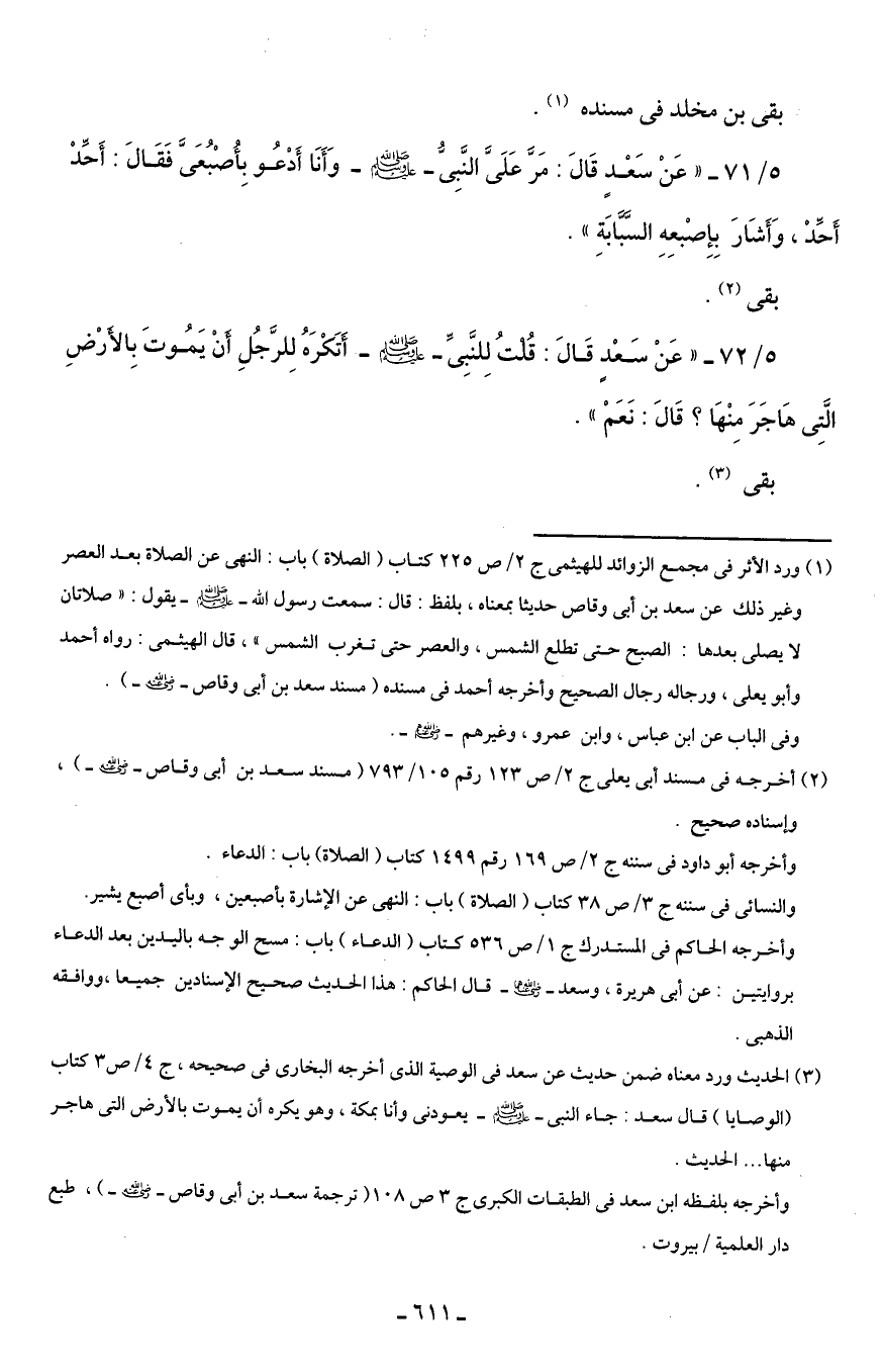 (¬2) أخرجه في مسند أبى يعلى ج 2/ ص 123 رقم 105/ 793 (مسند سعد بن أبى وقاص - رضي الله عنه -)، وإسناده صحيح.