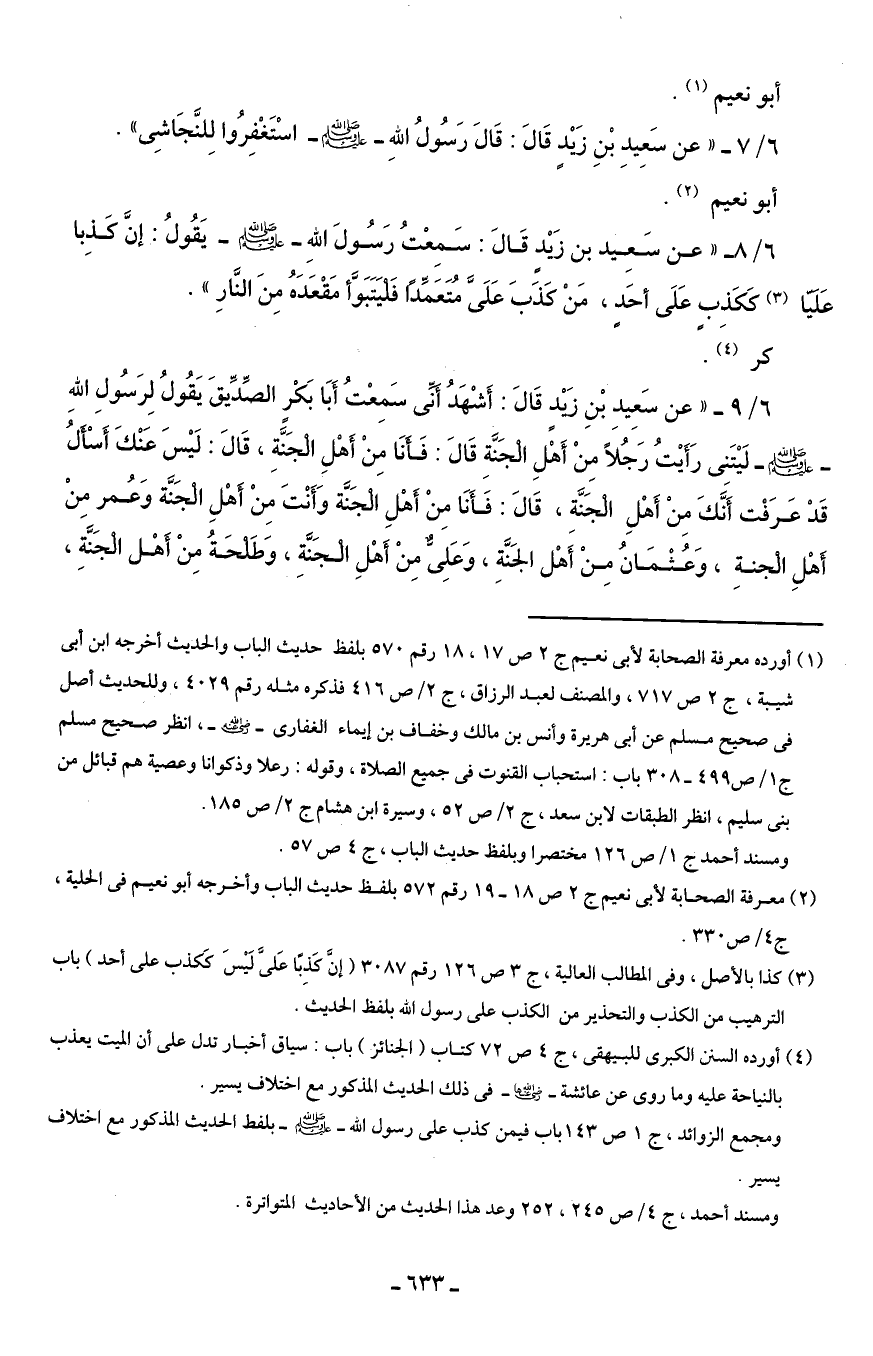 6/ 8 - "عن سَعِيد بن زَيْدٍ قَالَ: سَمِعْتُ رَسُولَ اللهِ - صلى الله عليه وسلم - يَقُولُ: إنَّ كَذِبا عَليّا (¬3) ككَذِبٍ عَلَى أحَدٍ، مَنْ كَذَبَ عَلَىَّ مُتَعَمِّدًا فَلْيَتَبَوَّأ مَقْعَدَهُ مِنَ النَّارِ".