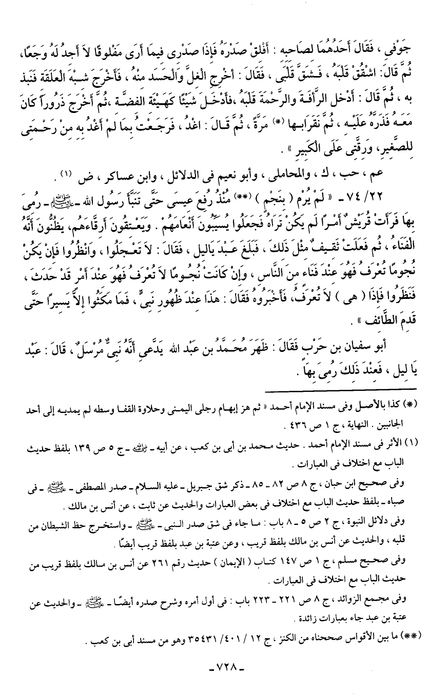 وفي مجمع الزوائد، ج 8 ص 221 - 223 باب: في أول أمره وشرح صدره أيضًا - صلى الله عليه وسلم - والحديث عن عتبة بن عبد جاء بعبارات زائدة.