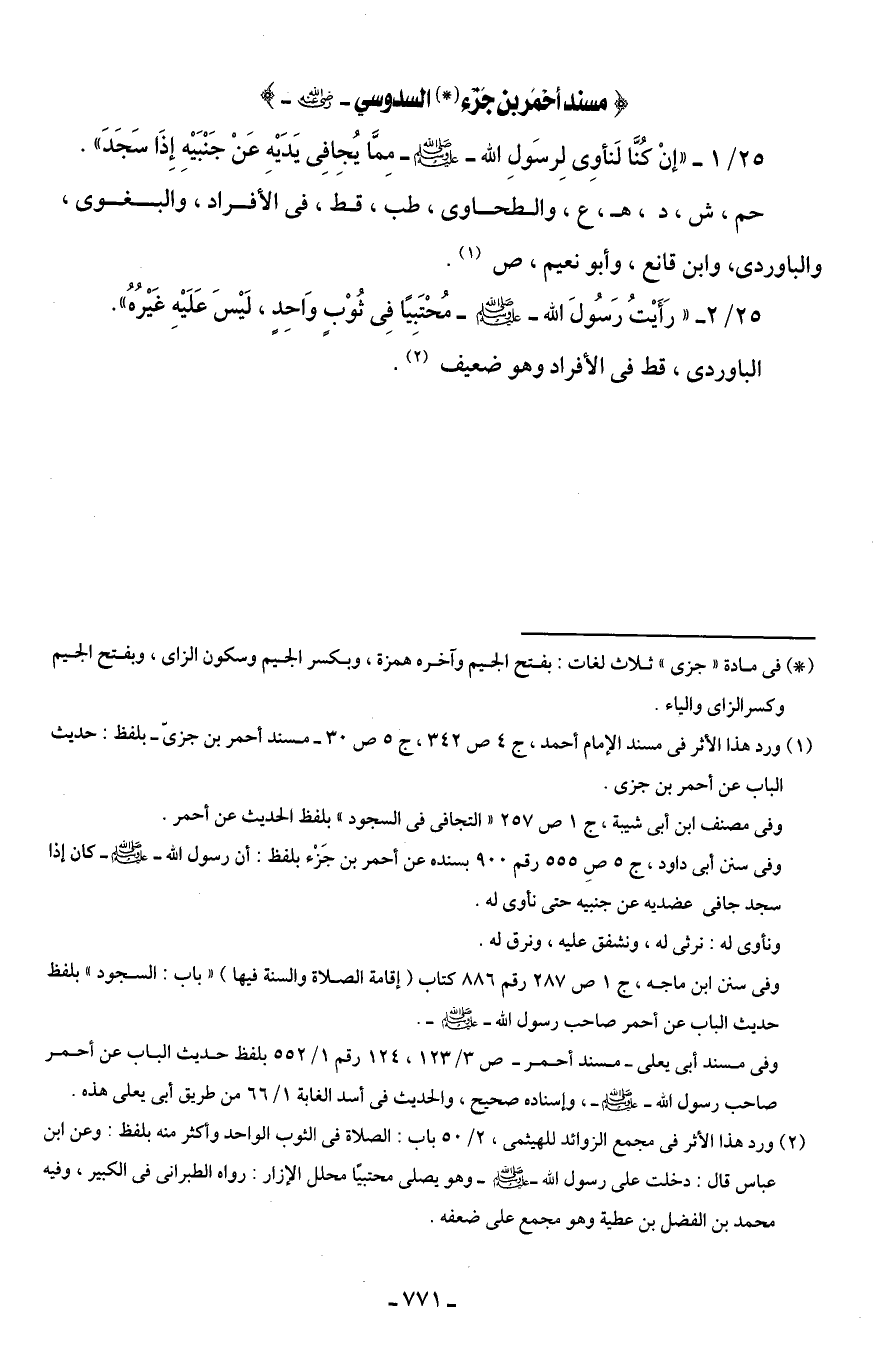 25/ 1 - " إنْ كُنَّا لَنأوِى لِرسَولِ الله - صلى الله عليه وسلم - مِمَّا يُجِافِى يَدَيْهِ عَنْ جَنْبَيْهِ إِذَا سَجَدَ".