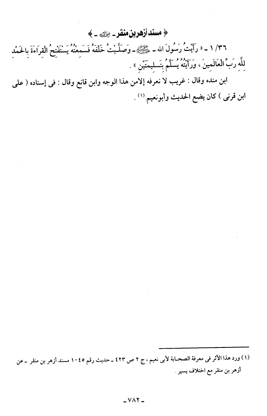 (¬1) ورد هذا الأثر في معرفة الصحابة لأبى نعيم، ج 2 ص 423 - حديث رقم 1045 مسند أزهر بن منقر - عن أزهر بن منقر مع اختلاف يسير.