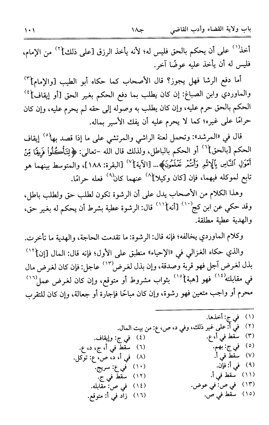 أما دفع الرشا فهل يجوز؟ قال الأصحاب كما حكاه أبو الطيب [والإمام] والماوردي وابن الصباغ: إن كان يطلب بما دفع الحكم بغير الحق [أو إيقاف] الحكم بالحق حرم عليه، وإن كان يطلب به وصوله إلى حقه لم يحرم عليه، وإن كان حراماً على غيره؛ كما لا يحرم عليه أن يفك الأسير بماله.