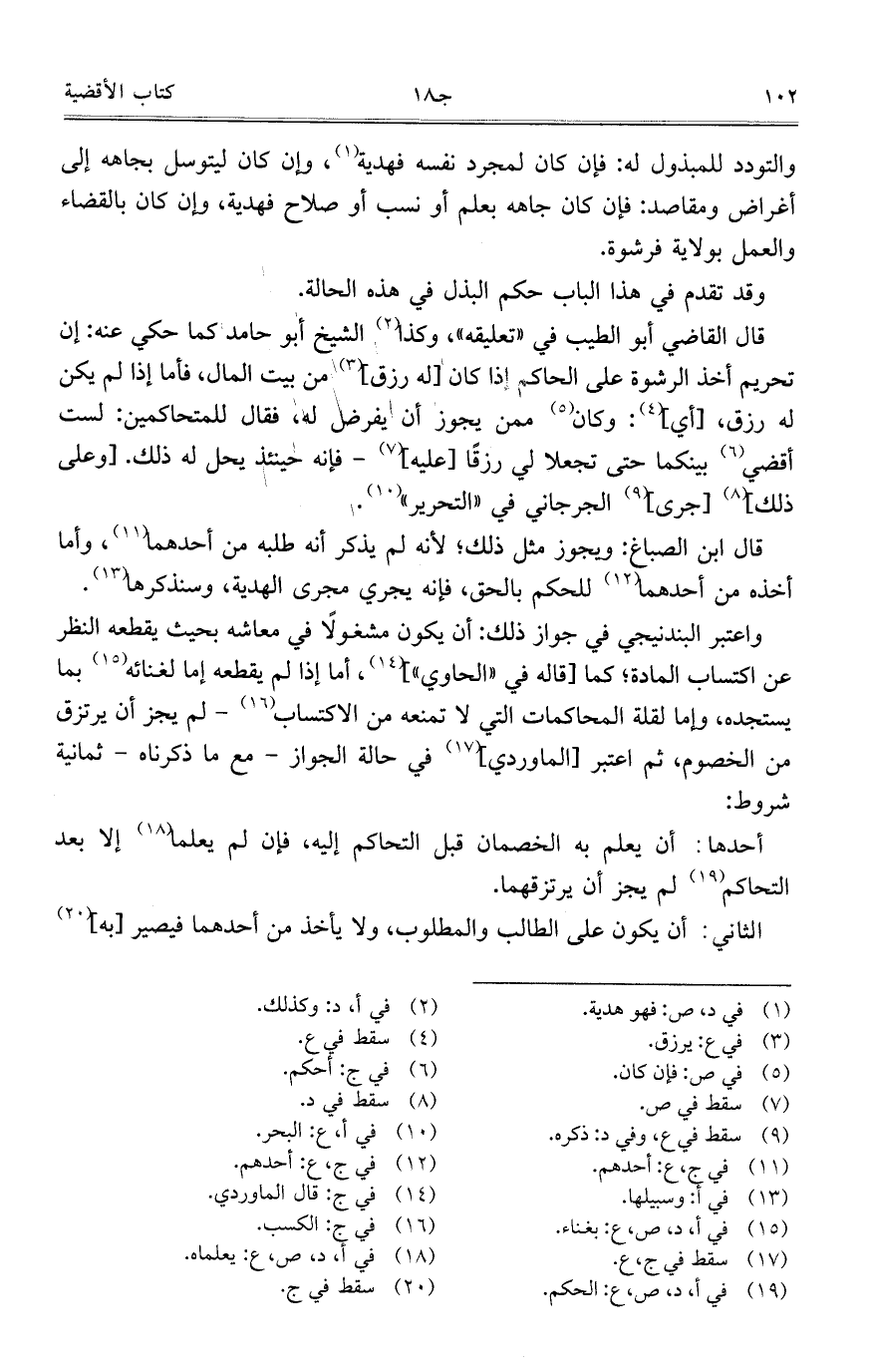 واعتبر البندنيجي في جواز ذلك: أن يكون مشغولاً في معاشه بحيث يقطعه النظر عن اكتساب المادة؛ كما [قاله في "الحاوي"]، أما إذا لم يقطعه إما لغنائه بما يستجده، وإما لقلة المحاكمات التي لا تمنعه من الاكتساب- لم يجز أن يرتزق من الخصوم، ثم اعتبر [الماوردي] في حالة الجواز- مع ما ذكرناه- ثمانية شروط: