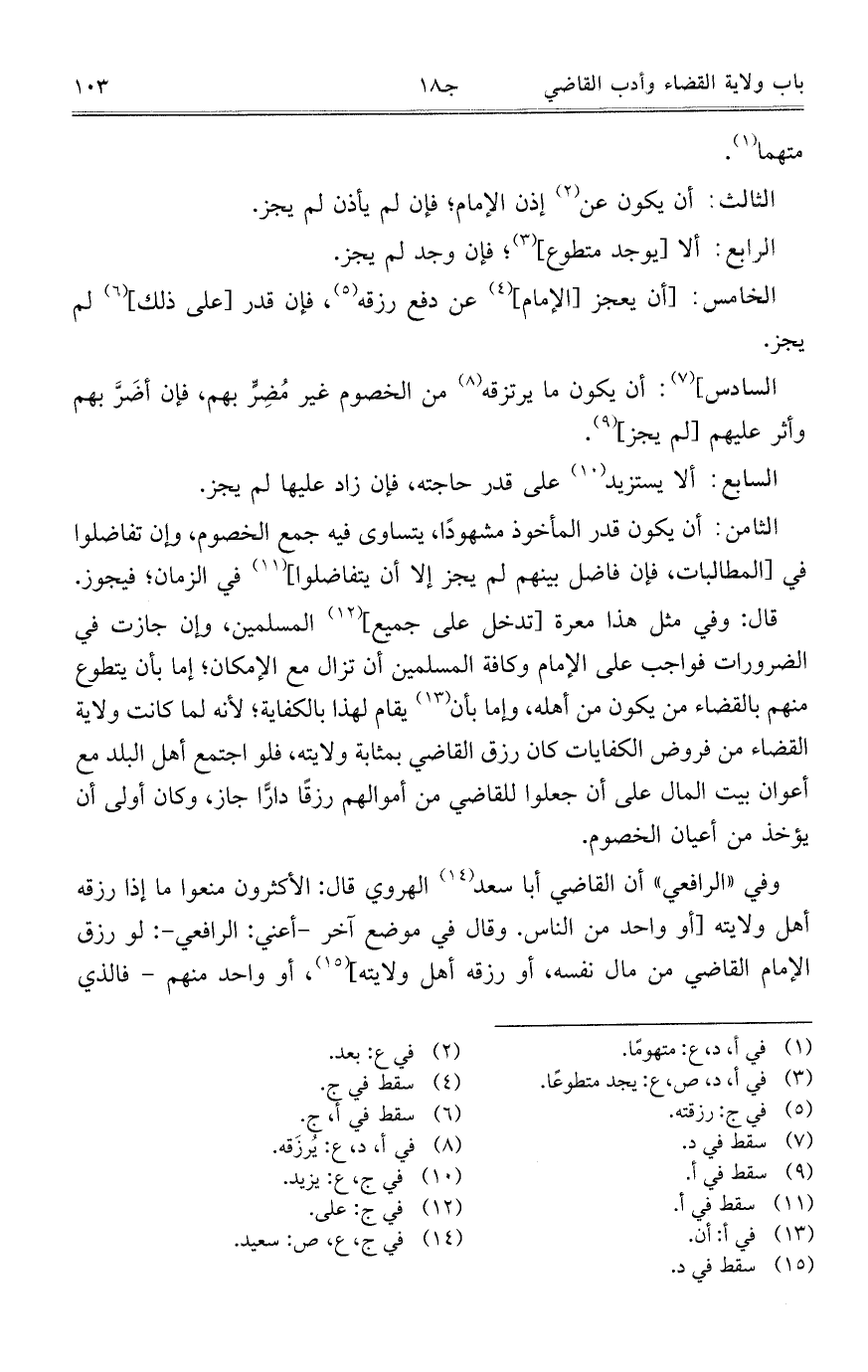 وفي "الرافعي" أن القاضي أبا سعد الهروي قال: الأكثرون منعوا ما إذا رزقه أهل ولايته [أو واحد من الناس. وقال في موضع آخر- أعني: الرافعي-: لو رزق الإمام القاضي من مال نفسه، أو رزقه أهل ولايته]، أو واحد منهم- فالذي