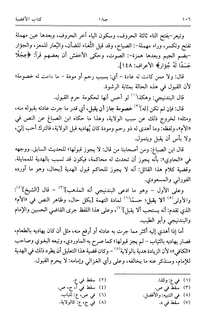 قال ابن الصباغ: ومن أصحابنا من قال: لا يجوز قبولها؛ للحديث السابق. ووجهه في "الحاوي": بأنه يجوز أن تحدث له محاكمة، فيكون قد تسبب بالهدية للممايلة. وقضية كلام هذا القائل: أنه لا يجوز للحاكم قبول الهدية [بحال، وهو ما أورده الفوراني والمسعودي.