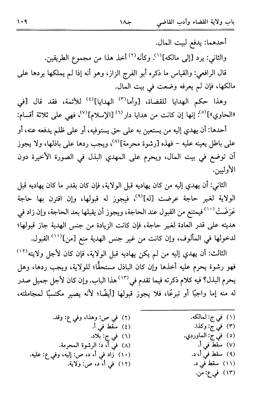 وهذا حكم الهدايا للقضاة، [وأما الهدايا] للأئمة، فقد قال [في "الحاوي"]: إنها إن كانت من هدايا دار [الإسلام]، فهي على ثلاثة أقسام: