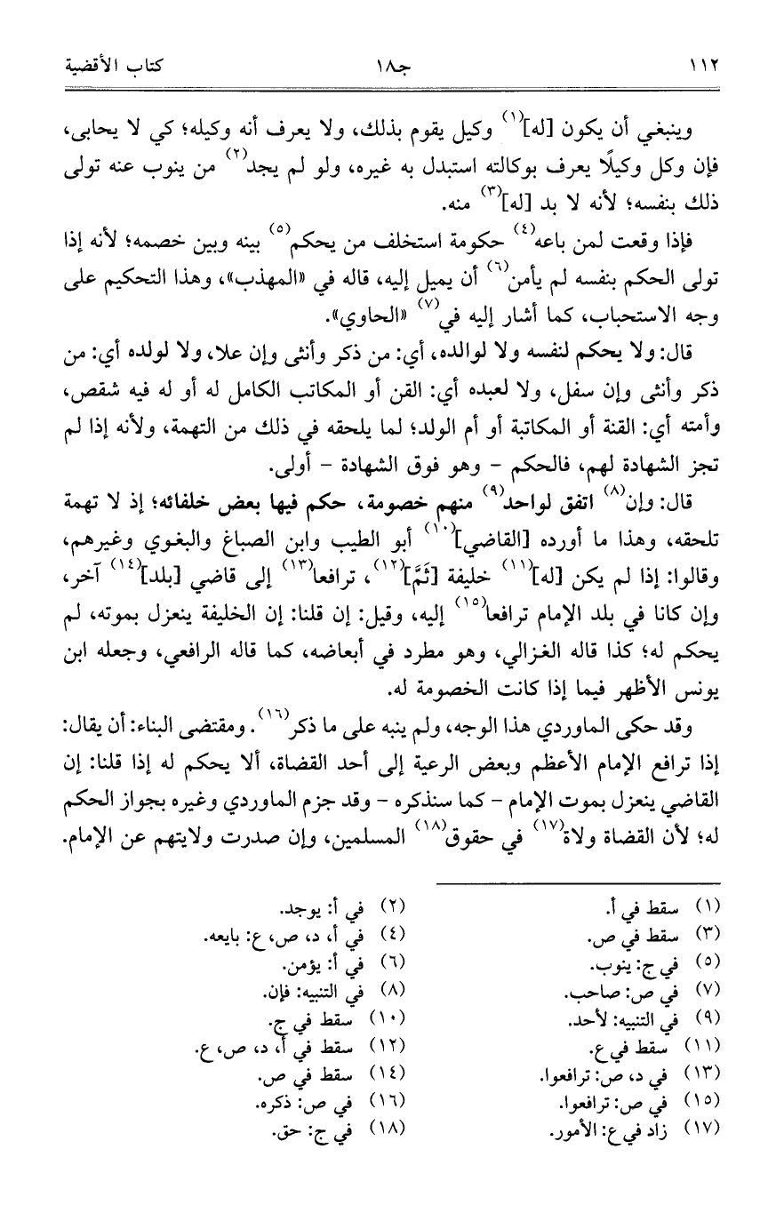 وقد حكى الماوردي هذا الوجه، ولم ينبه على ما ذكر. ومقتضى البناء: أن يقال: إذا ترافع الإمام الأعظم وبعض الرعية إلى أحد القضاة، ألا يحكم له إذا قلنا: إن القاضي ينعزل بموت الإمام- كما سنذكره- وقد جزم الماوردي وغيره بجواز الحكم له؛ لأن القضاة ولاة في حقوق المسلمين، وإن صدرت ولايتهم عن الإمام.