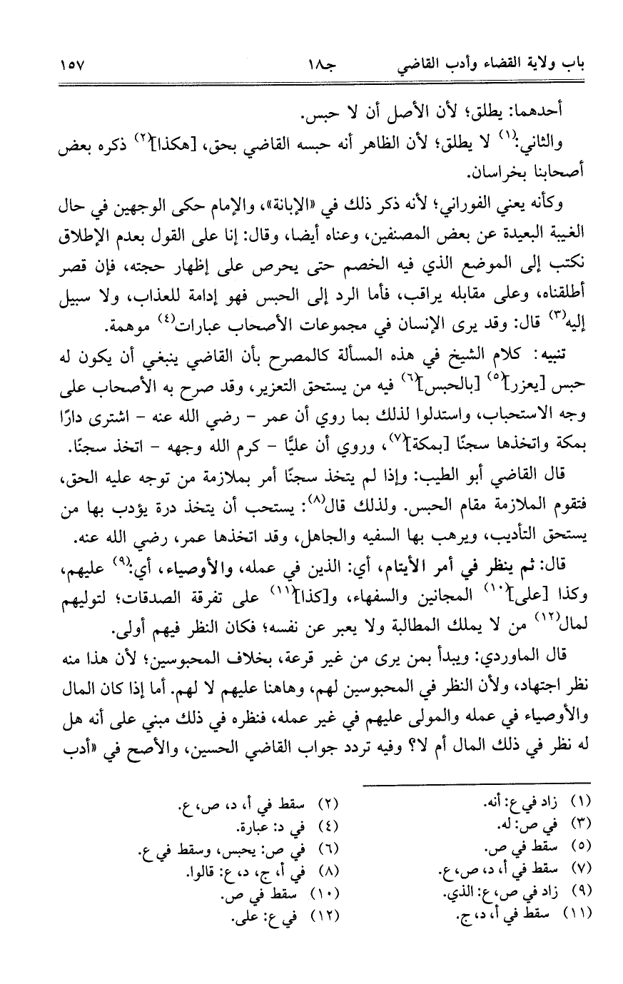 قال القاضي أبو الطيب: وإذا لم يتخذ سجناً أمر بملازمة من توجه عليه الحق، فتقوم الملازمة مقام الحبس. ولذلك قال: يستحب أن يتخذ درة يؤدب بها من يستحق التأديب، ويرهب بها السفيه والجاهل، وقد اتخذها عمر، رضي الله عنه.