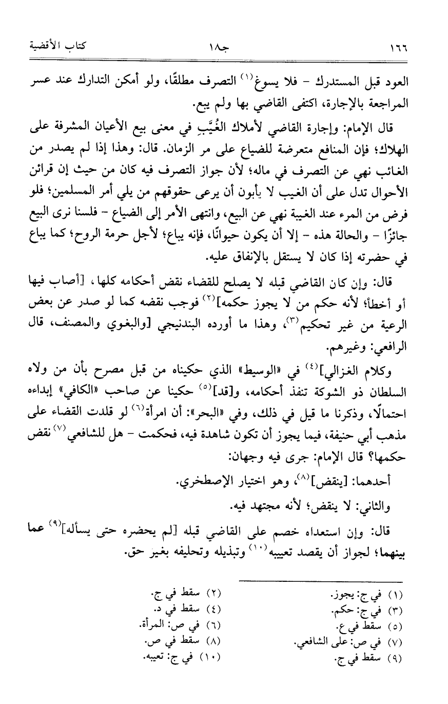 قال الإمام: وإجارة القاضي لأملاك الغُيَّبِ في معنى بيع الأعيان المشرفة على الهلاك؛ فإن المنافع متعرضة للضياع على مر الزمان. قال: وهذا إذا لم يصدر من الغائب نهي عن التصرف في ماله؛ لأن جواز التصرف فيه كان من حيث إن قرائن الأحوال تدل على أن الغيب لا يأبون أن يرعى حقوقهم من يلي أمر المسلمين؛ فلو فرض من المرء عند الغيبة نهي عن البيع، وانتهى الأمر إلى الضياع- فلسنا نرى البيع جائزاً- والحالة هذه- إلا أن يكون حيواناً، فإنه يباع؛ لأجل حرمة الروح؛ كما يباع في حضرته إذا كان لا يستقل بالإنفاق عليه.