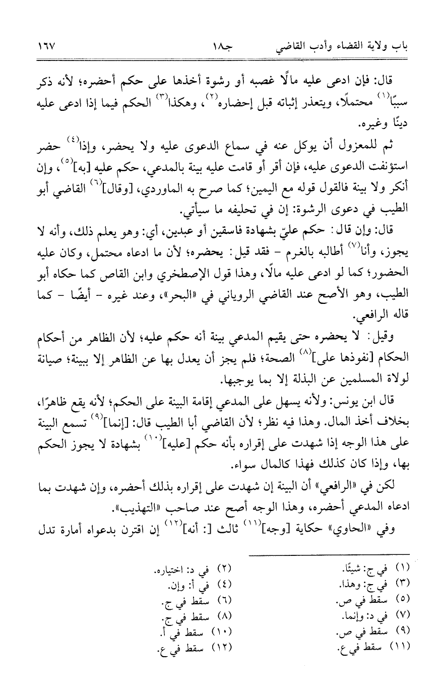 وقيل: لا يحضره حتى يقيم المدعي بينة أنه حكم عليه؛ لأن الظاهر من أحكام الحكام [نفوذها على] الصحة؛ فلم يجز أن يعدل بها عن الظاهر إلا ببينة؛ صيانة لولاة المسلمين عن البذلة إلا بما يوجبها.