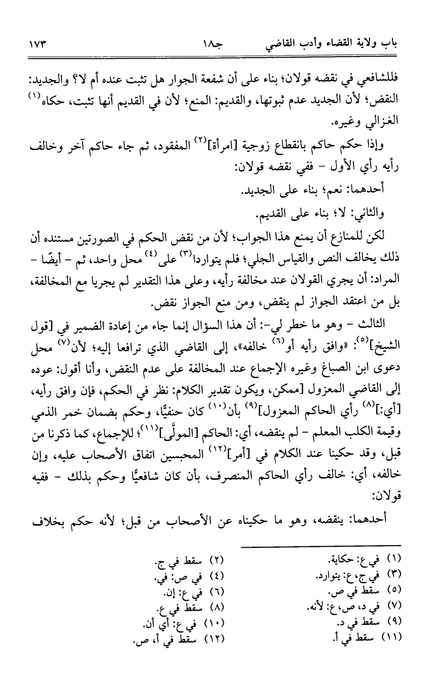 وإذا حكم حاكم بانقطاع زوجية [امرأة] المفقود، ثم جاء حاكم آخر وخالف رأيه رأي الأول- ففي نقضه قولان: