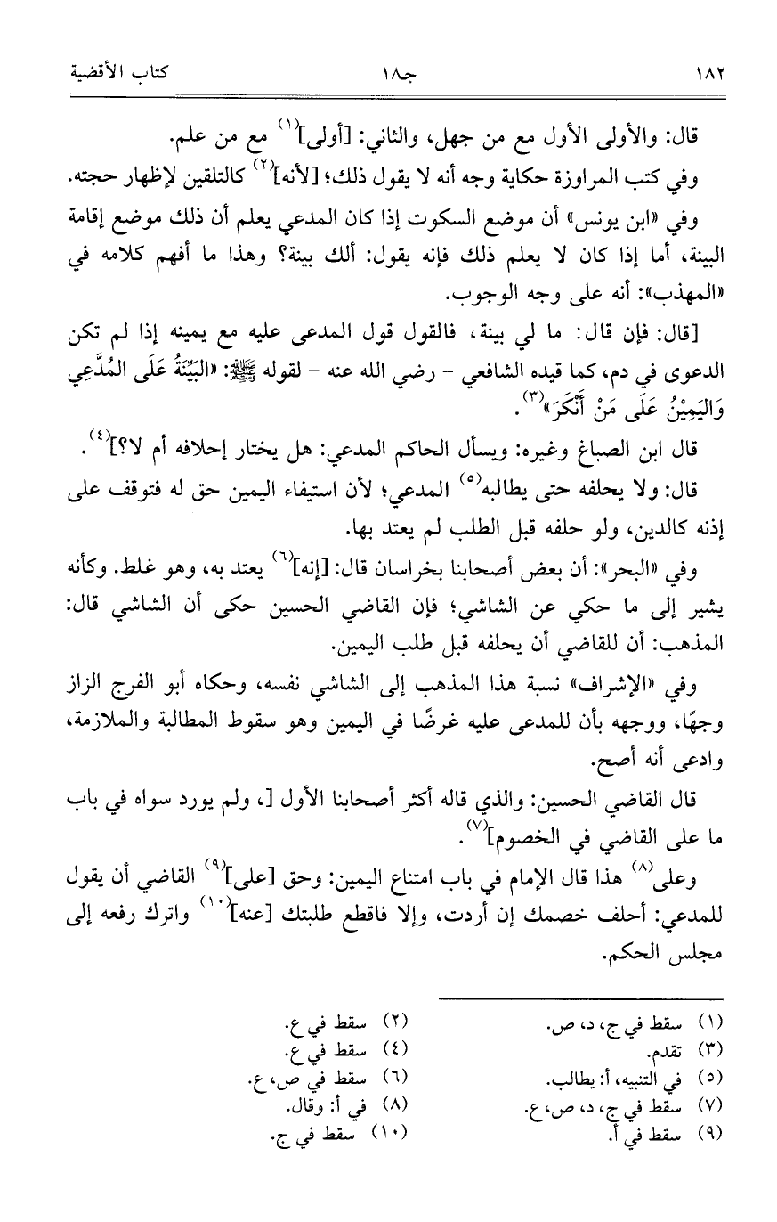 وفي "ابن يونس" أن موضع السكوت إذا كان المدعي يعلم أن ذلك موضع إقامة البينة، أما إذا كان لا يعلم ذلك فإنه يقول: ألك بينة؟ وهذا ما أفهم كلامه في "المهذب": أنه على وجه الوجوب.