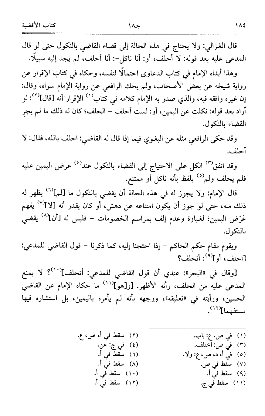 وهذا أبداه الإمام في كتاب الدعاوى احتمالاً لنفسه، وحكاه في كتاب الإقرار عن رواية شيخه عن بعض الأصحاب، ولم يحك الرافعي عن رواية الإمام سواه، وقال: إن غيره وافقه فيه، والذي صدر به الإمام كلامه في كتاب الإقرار أنه [قال]: لو أراد بعد قوله: نكلت عن اليمين، أو: لست أحلف- الحلف؛ كان له ذلك ما لم يجرِ القضاء بالنكول.