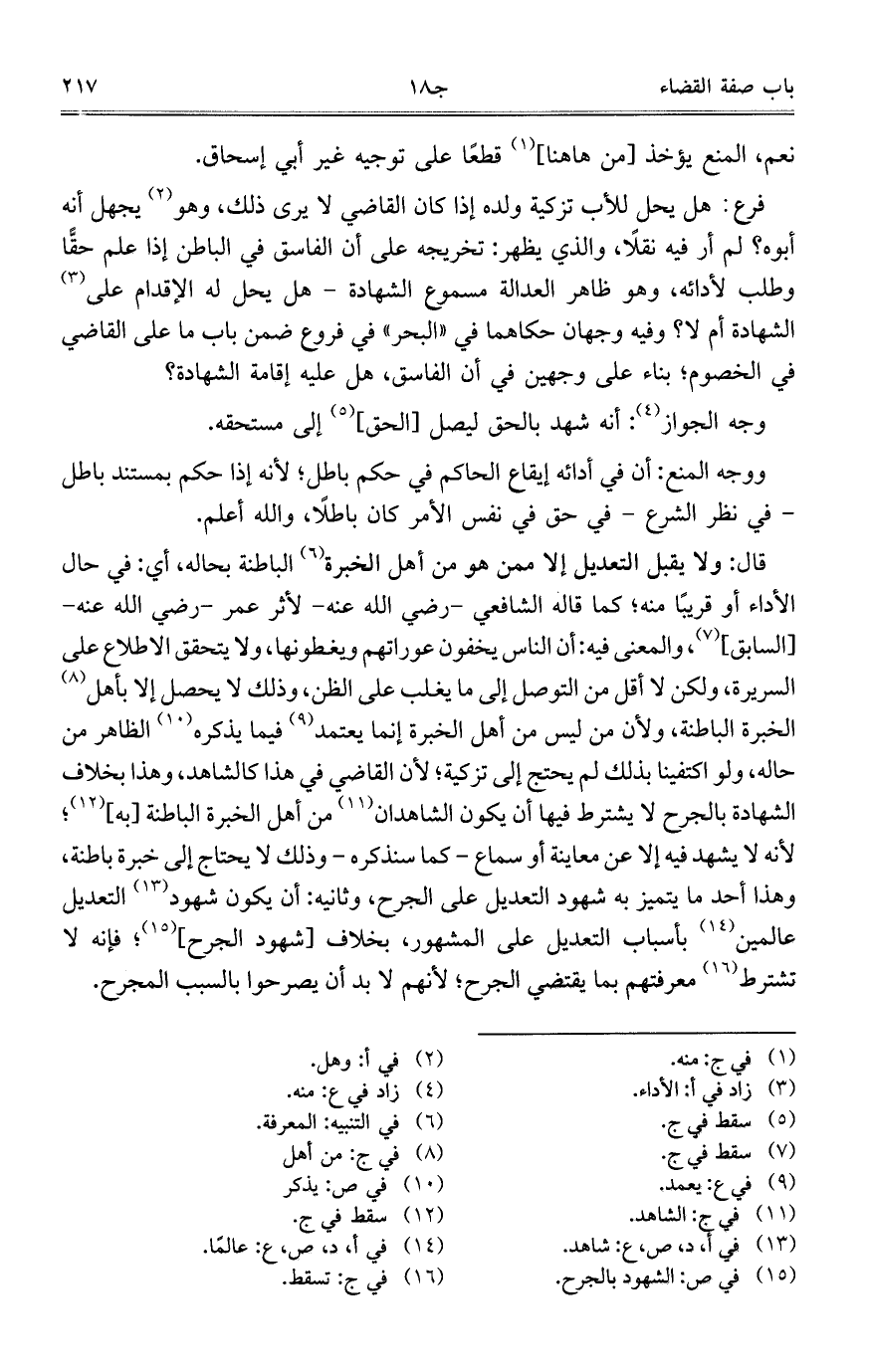 قال: ولا يقبل التعديل إلا ممن هو من أهل الخبرة الباطنة بحاله، أي: في حال الأداء أو قريباً منه؛ كما قاله الشافعي- رضي الله عنه- لأثر عمر- رضي الله عنه-[السابق]، والمعنى فيه: أن الناس يخفون عوراتهم ويغطونها، ولا يتحقق الإطلاع على السريرة، ولكن لا أقل من التوصل إلى ما يغلب على الظن، وذلك لا يحصل إلا بأهل الخبرة الباطنة، ولأن من ليس من أهل الخبرة إنما يعتمد فيما يذكره الظاهر من حاله، ولو اكتفينا بذلك لم يحتج إلى تزكية؛ لأن القاضي في هذا كالشاهد، وهذا بخلاف الشهادة بالجرح لا يشترط فيها أن يكون الشاهدان من أهل الخبرة الباطنة [به]؛ لأنه لا يشهد فيه إلا عن معاينة أو سماع- كما سنذكره- وذلك لا يحتاج إلى خبرة باطنة، وهذا أحد ما يتميز به شهود التعديل على الجرح، وثانيه: أن يكون شهود التعديل عالمين بأسباب التعديل على المشهور، بخلاف [شهود الجرح]؛ فإنه لا تشترط معرفتهم بما يقتضي الجرح؛ لأنهم لابد أن يصرحوا بالسبب المجرح.