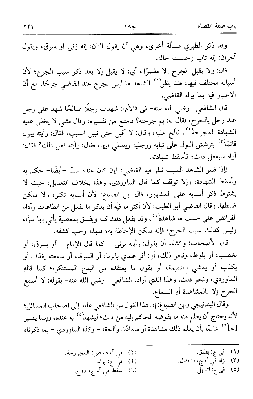 قال الشافعي- رضي الله عنه- في "الأم": شهدت رجلاً صالحاً شهد على رجل عند رجل بالجرح، فقال له: بم جرحته؟ فامتنع من تفسيره، وقال مثلي لا يخفى عليه الشهادة المجرحة، فألح عليه، وقال: لا أقبل حتى تبين السبب، فقال: رأيته يبول قائماً يترشش البول على ثيابه ورجليه ويصلي فيها، فقال: رأيته فعل ذلك؟ فقال: أراه سيفعل ذلك؛ فأسقط شهادته.