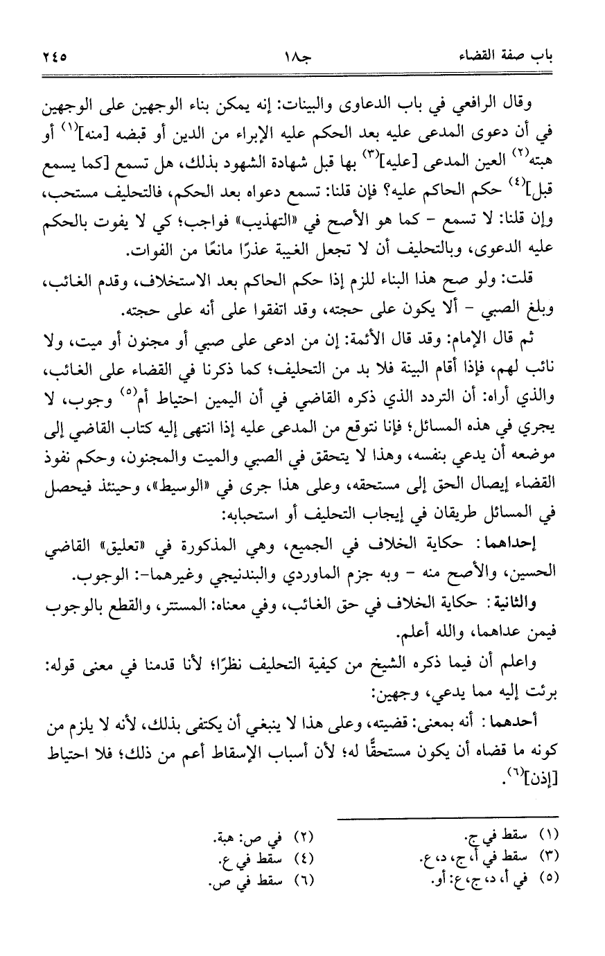 وقال الرافعي في باب الدعاوى والبينات: إنه يمكن بناء الوجهين على الوجهين في أن دعوى المدعى عليه بعد الحكم عليه الإبراء من الدين أو قبضه [منه] أو هبته العين المدعى [عليه] بها قبل شهادة الشهود بذلك، هل تسمع [كما يسمع قبل] حكم الحاكم عليه؟ فإن قلنا: تسمع دعواه بعد الحكم، فالتحليف مستحب، وإن قلنا: لا تسمع- كما هو الأصح في "التهذيب" فواجب؛ كي لا يفوت بالحكم عليه الدعوى، وبالتحليف أن لا تجعل الغيبة عذراً مانعاً من الفوات.