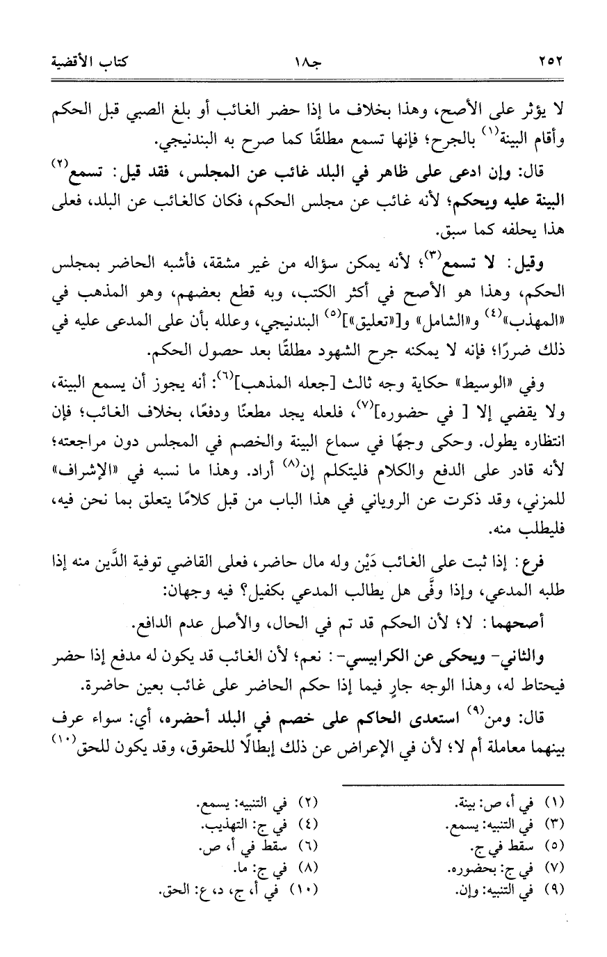 والثاني- ويحكى عن الكرابيسي-: نعم؛ لأن الغائب قد يكون له مدفع إذا حضر فيحتاط له، وهذا الوجه جارٍ فيما إذا حكم الحاضر على غائب بعين حاضرة.