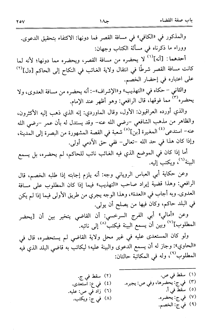 والمذكور في "الكافي" في مسافة القصر فما دونها: الاكتفاء بتحقيق الدعوى.