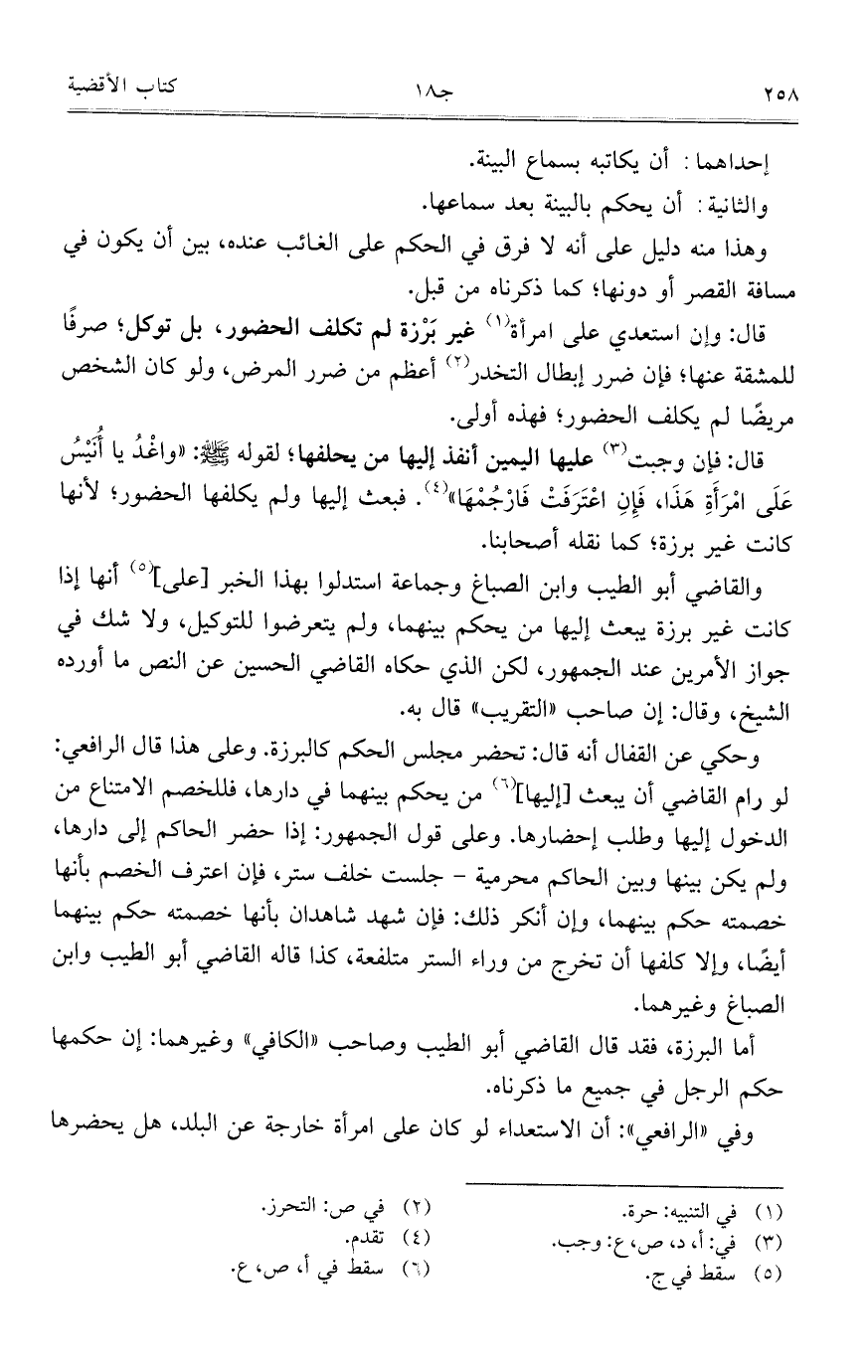 والقاضي أبو الطيب وابن الصباغ وجماعة استدلوا بهذا الخبر [على] أنها إذا كانت غير برزة يبعث إليها من يحكم بينهما، ولم يتعرضوا للتوكيل، ولاشك في جواز الأمرين عند الجمهور، لكن الذي حكاه القاضي الحسين عن النص ما أورده الشيخ، وقال: إن صاحب "التقريب" قال به.