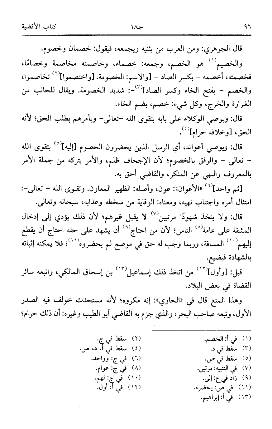 قال: ويوصي الوكلاء على بابه بتقوى الله- تعالى- ويأمرهم بطلب الحق؛ لأنه الحق، [وخلافه حرام].