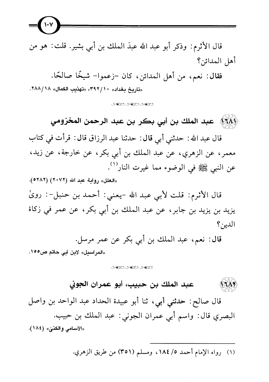"تاريخ بغداد" 10/ 392، "تهذيب الكمال" 18/ 288.