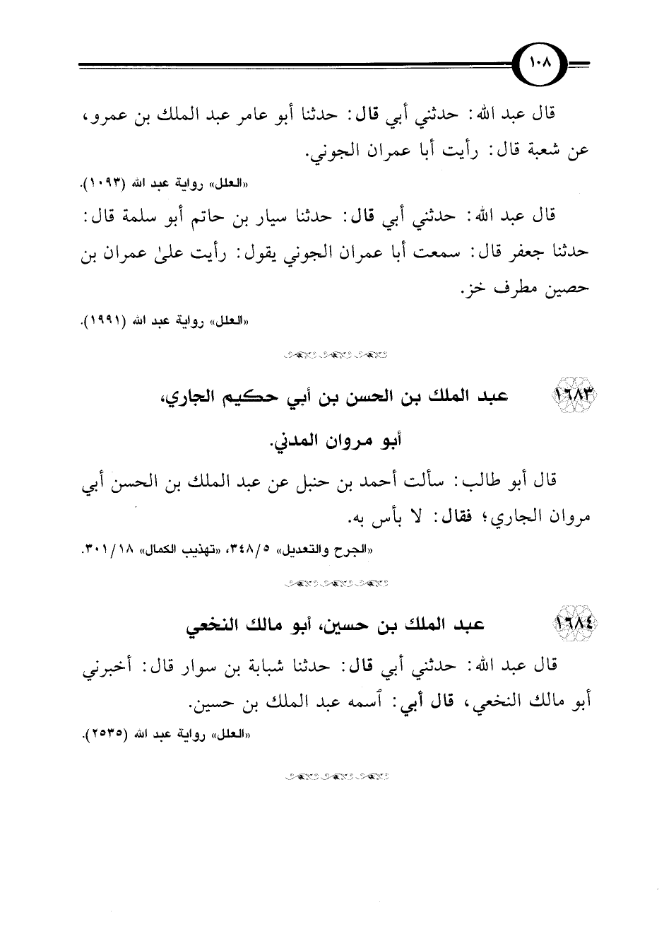 "العلل" رواية عبد اللَّه (1991).