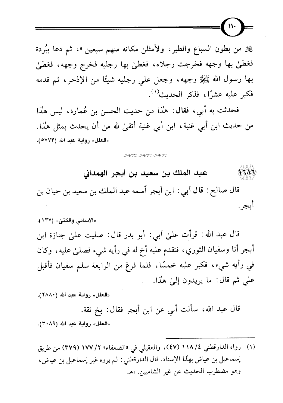 قال صالح: قال أبي: ابن أبجر اسمه عبد الملك بن سعيد بن حيان بن أبجر.