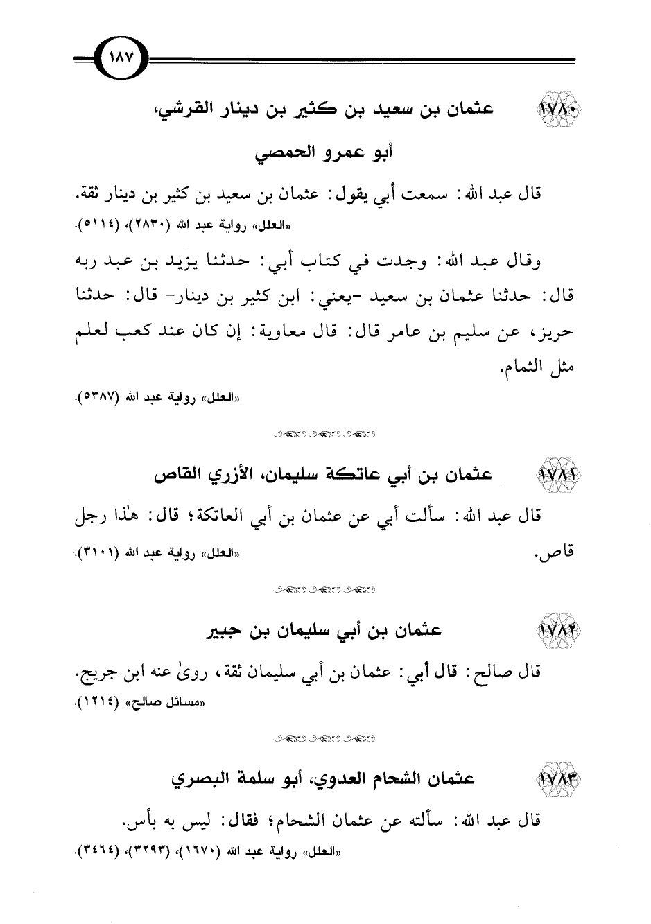 قال عبد اللَّه: سمعت أبي يقول: عثمان بن سعيد بن كثير بن دينار ثقة.