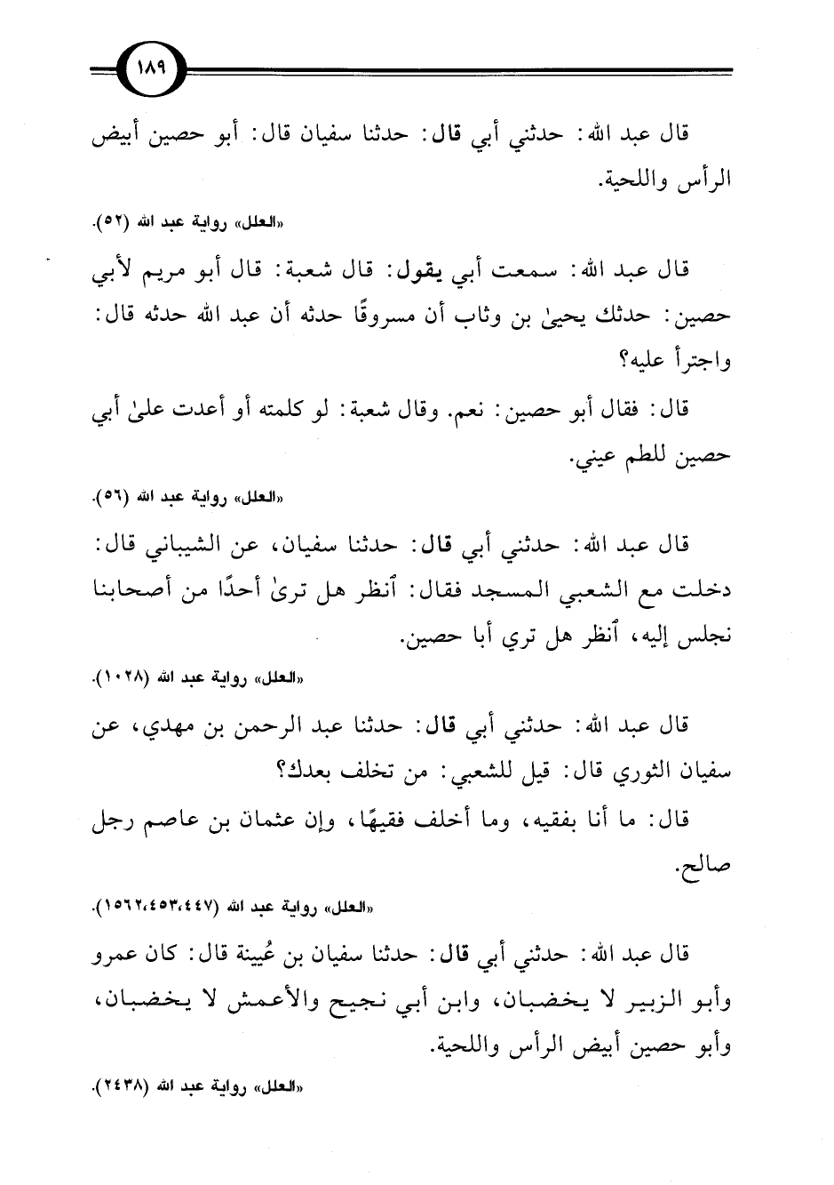 "العلل" رواية عبد اللَّه (447، 453، 1562).