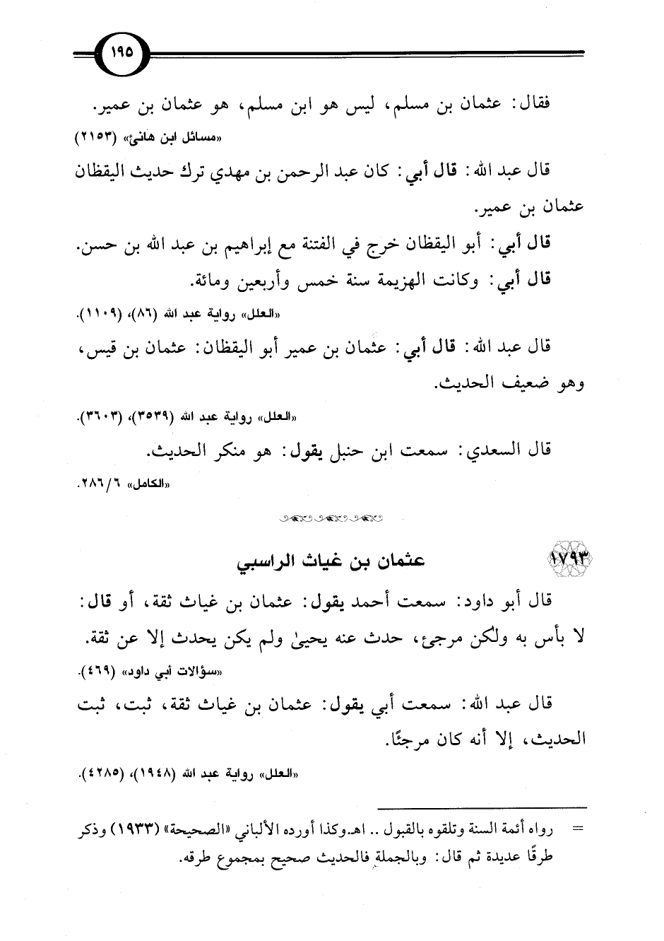 فقال: عثمان بن مسلم، ليس هو ابن مسلم، هو عثمان بن عمير.