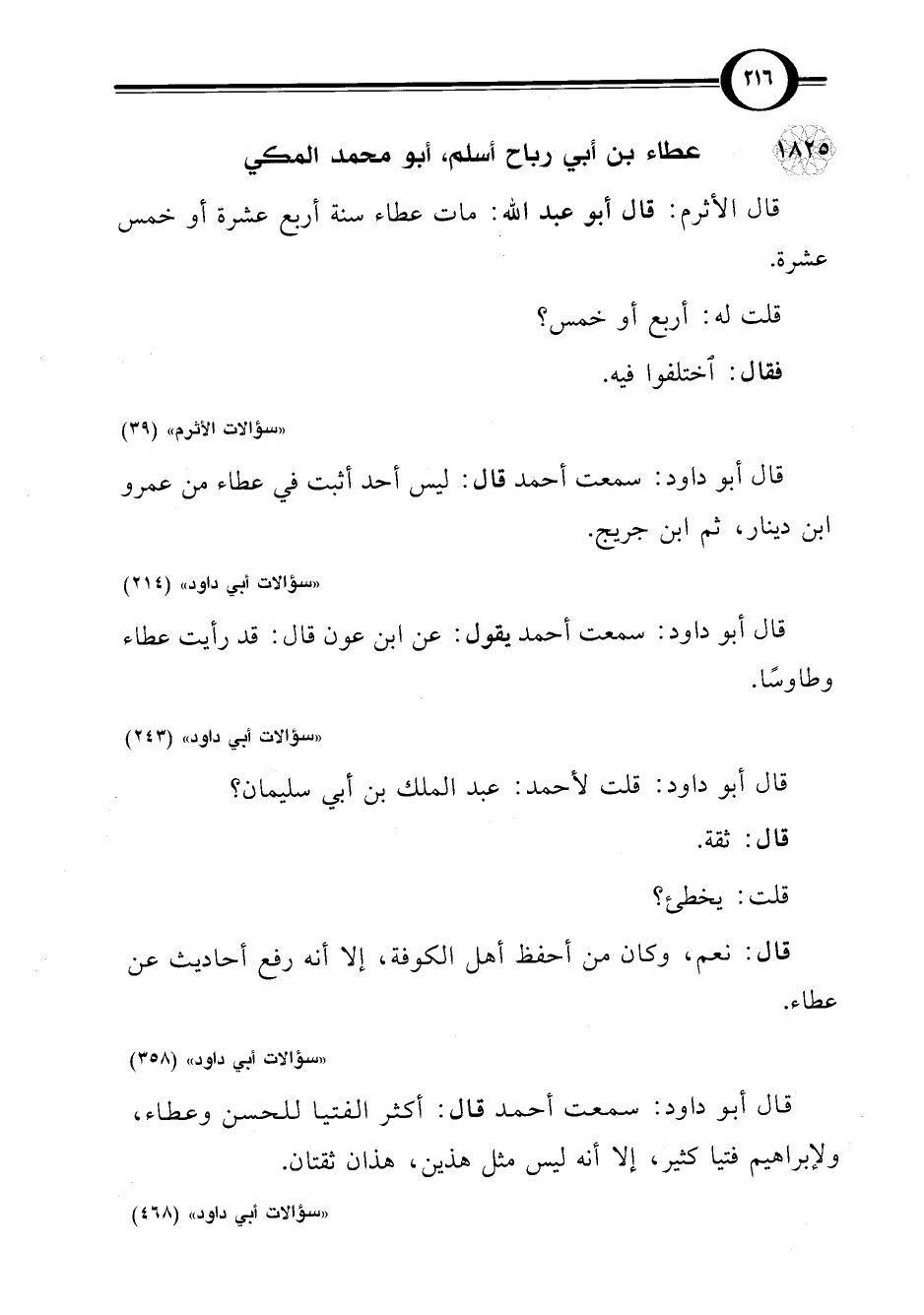 1825 - عطاء بن أبي رباح أسلم، أبو محمد المكي