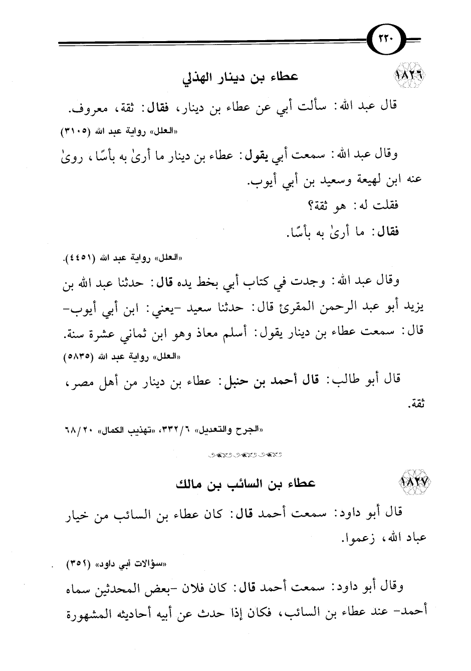 "الجرح والتعديل" 6/ 332، "تهذيب الكمال" 20/ 68