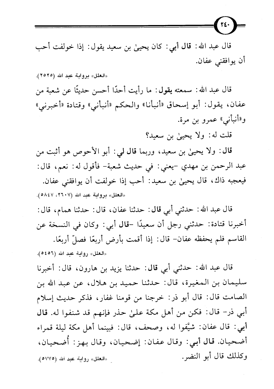 "العلل" برواية عبد اللَّه (2607، 5847).