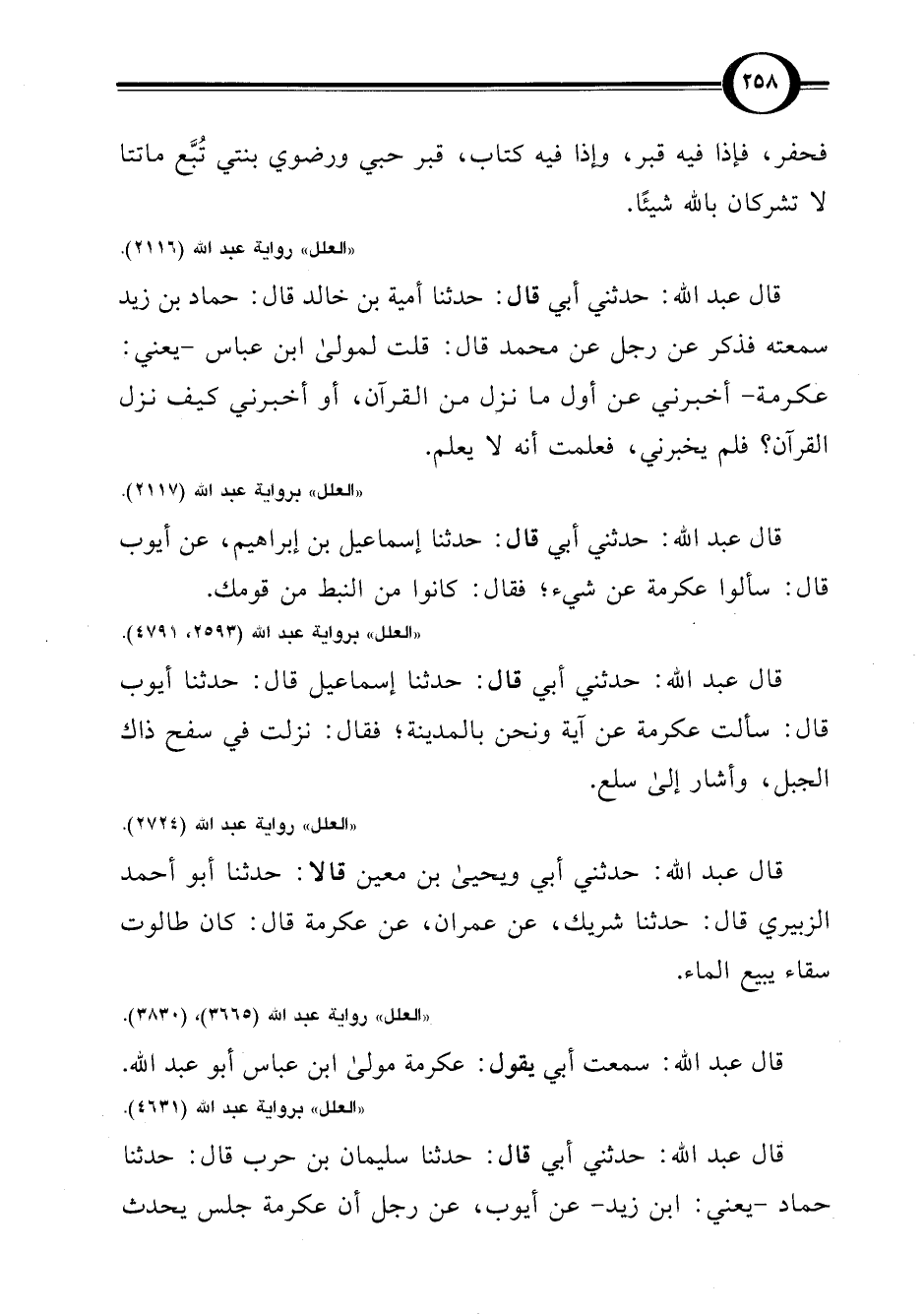 "العلل" برواية عبد اللَّه (2593، 4791).