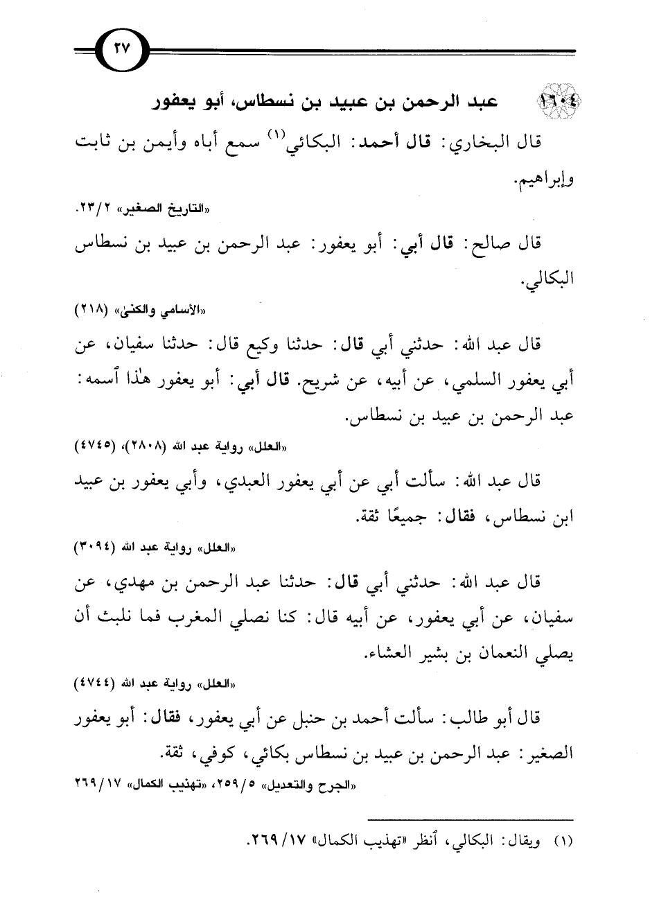 "الجرح والتعديل" 5/ 259، "تهذيب الكمال" 17/ 269