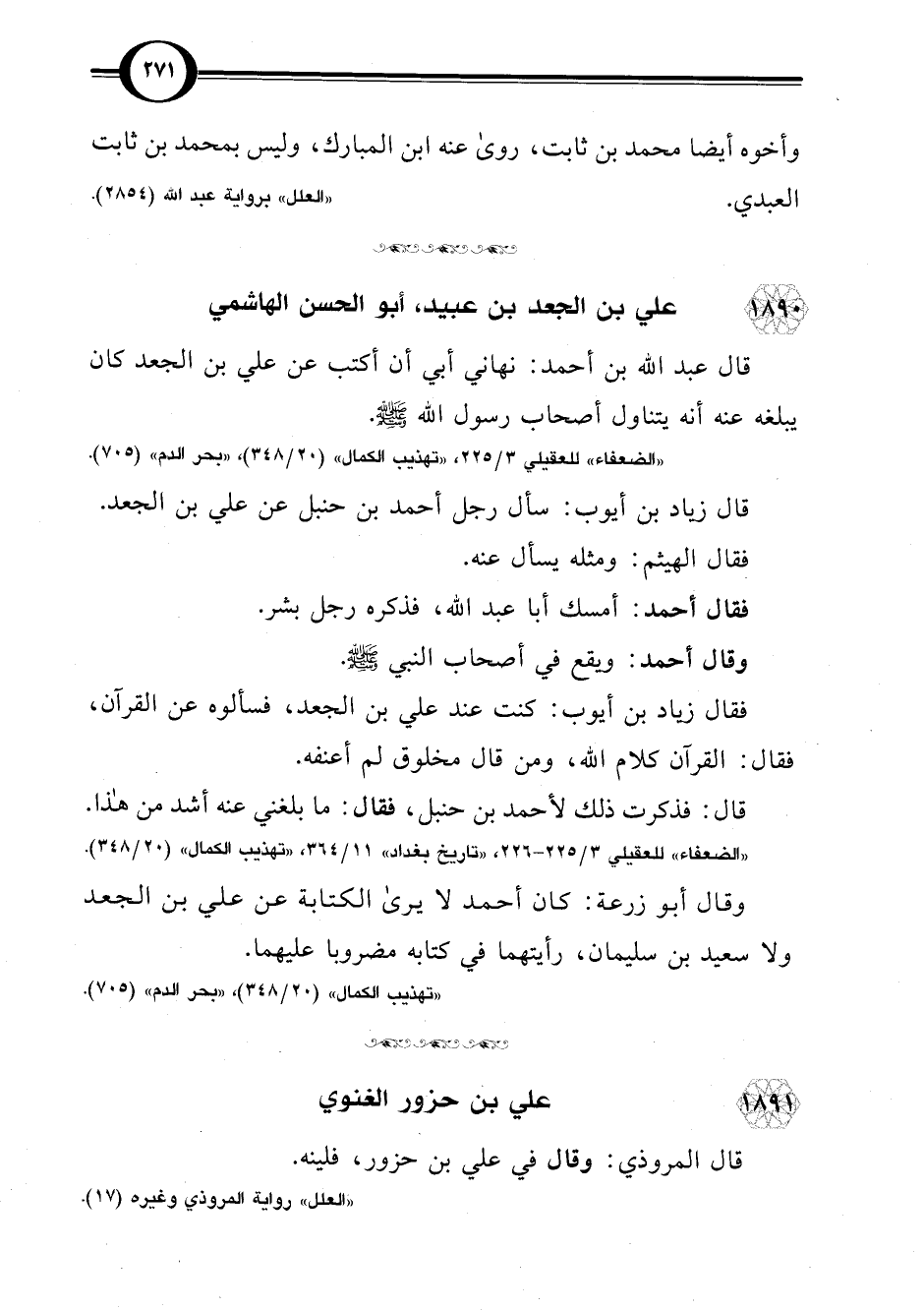 قال زياد بن أيوب: سأل رجل أحمد بن حنبل عن علي بن الجعد.