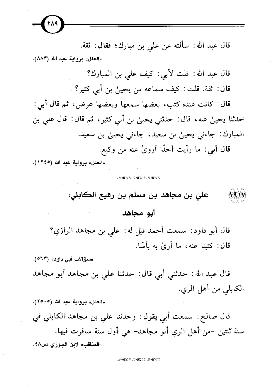 قال عبد اللَّه: حدثني أبي قال: حدثنا علي بن مجاهد أبو مجاهد الكابلي من أهل الري.