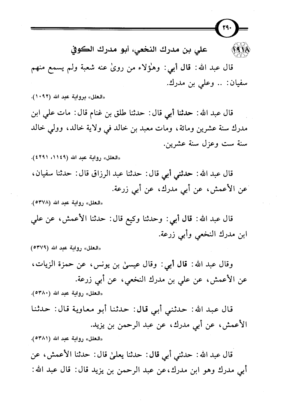 "العلل" رواية عبد اللَّه (1149، 4291).