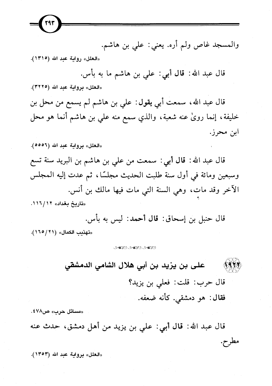 قال عبد اللَّه: قال أبي: علي بن هاشم ما به بأس.
