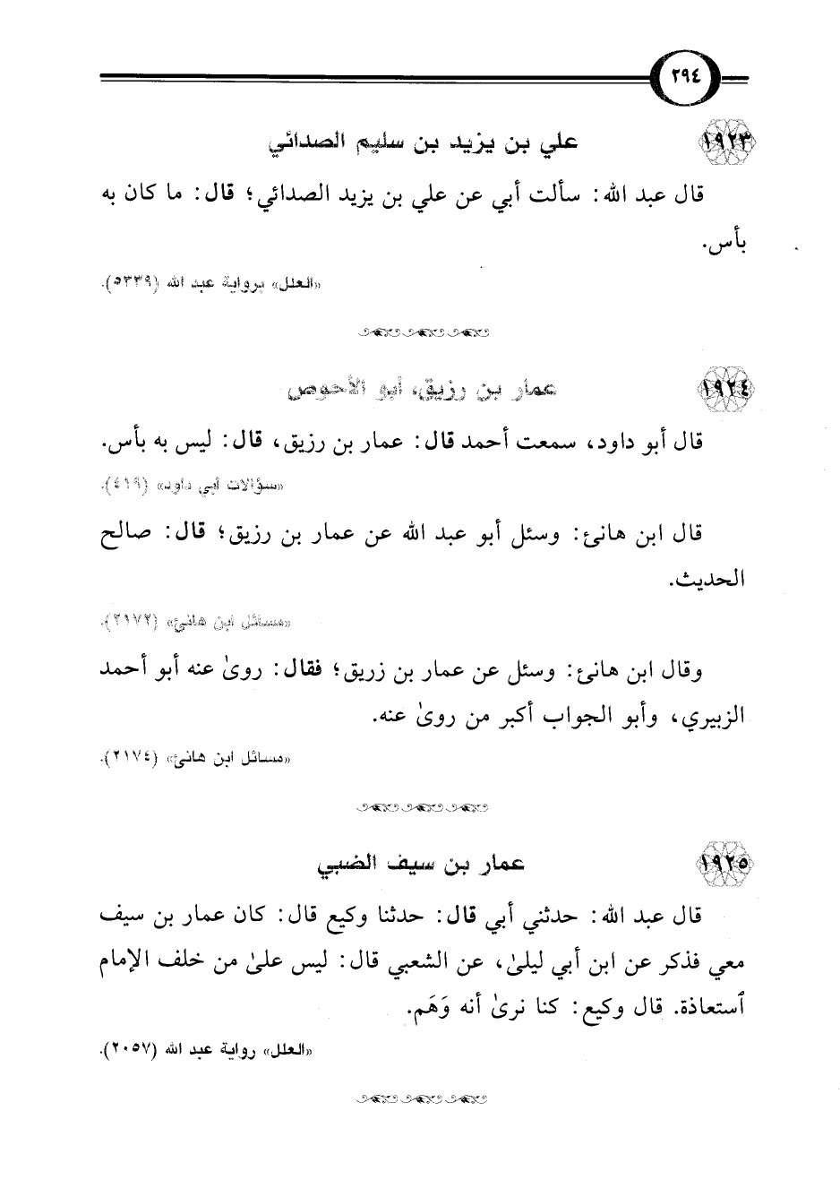 قال ابن هانئ: وسئل أبو عبد اللَّه عن عمار بن رزيق؛ قال: صالح الحديث.