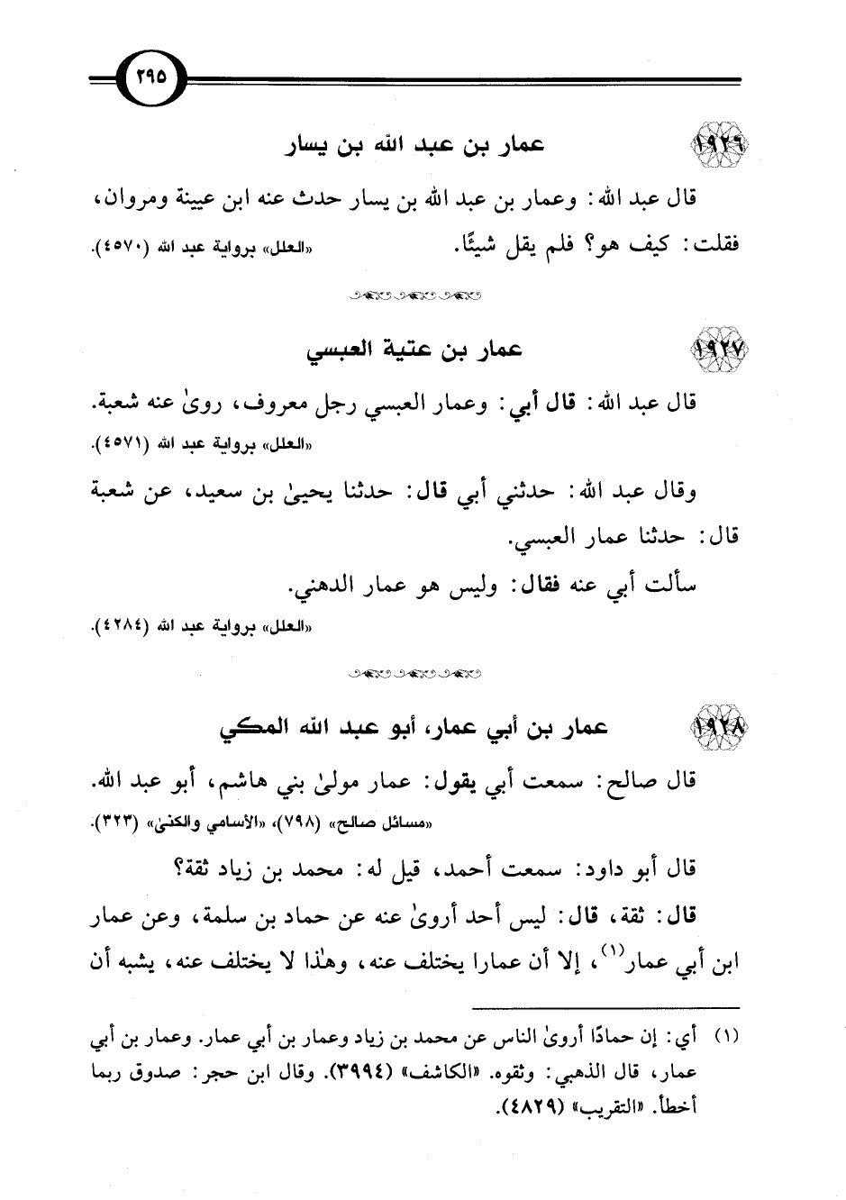 وقال عبد اللَّه: حدثني أبي قال: حدثنا يحيى بن سعيد، عن شعبة قال: حدثنا عمار العبسي.