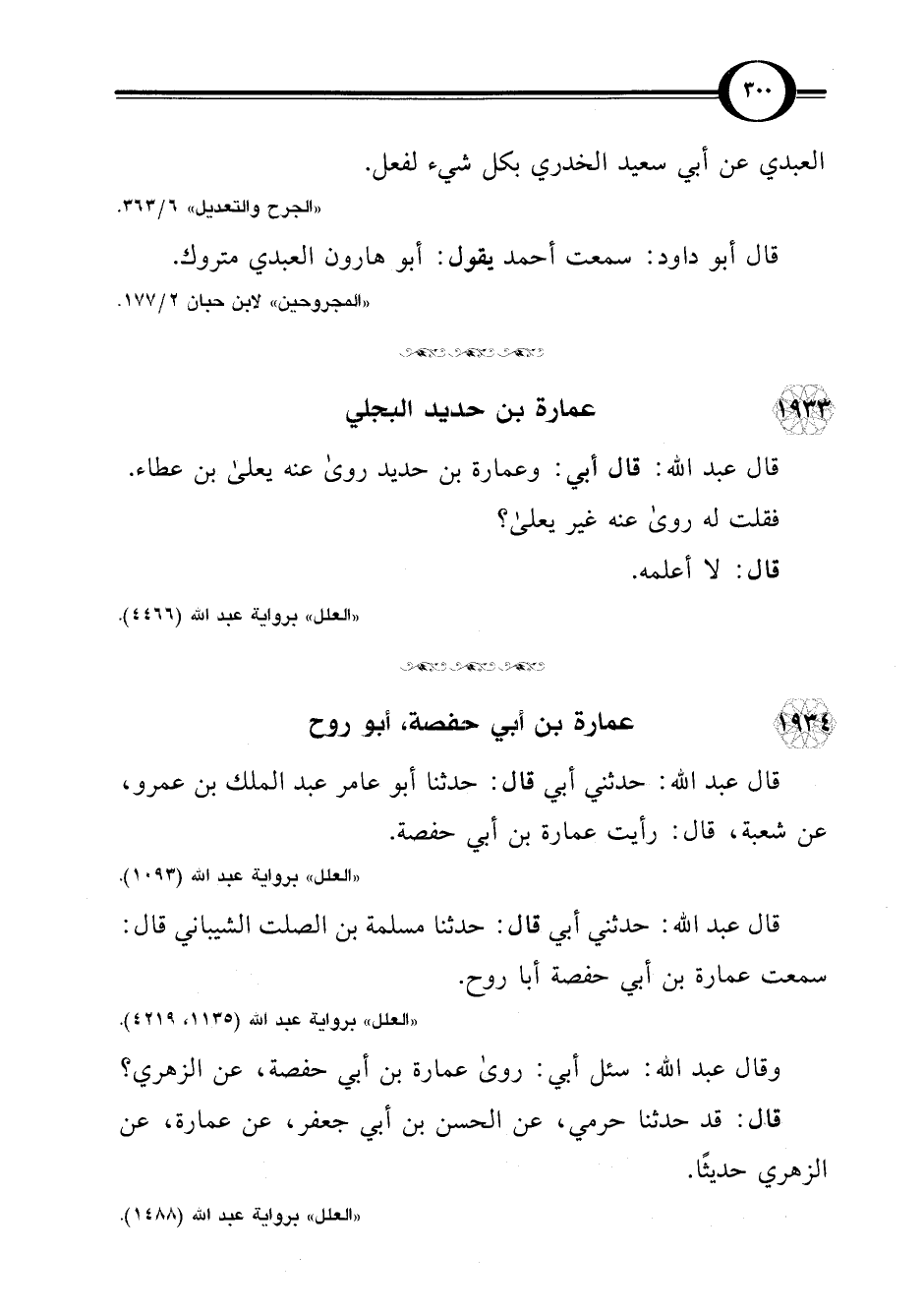 "العلل" برواية عبد اللَّه (1135، 4219).