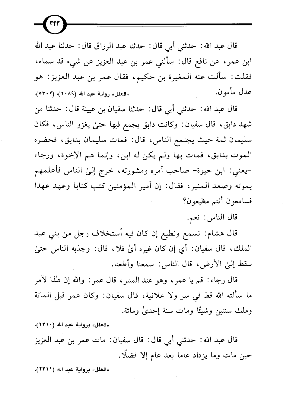 "العلل" رواية عبد اللَّه (2089)، (5302).