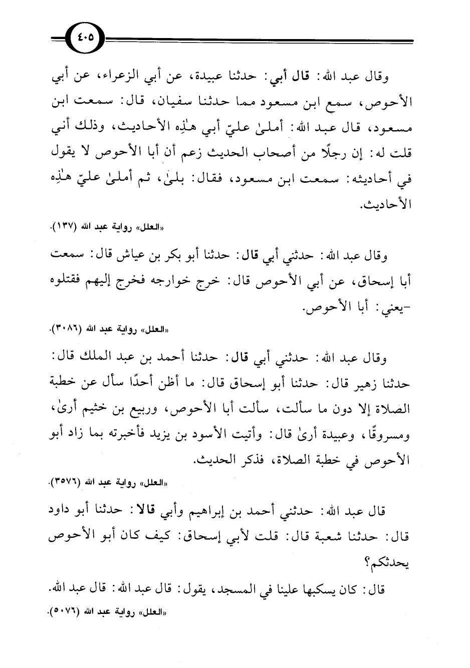 "العلل" رواية عبد اللَّه (137).