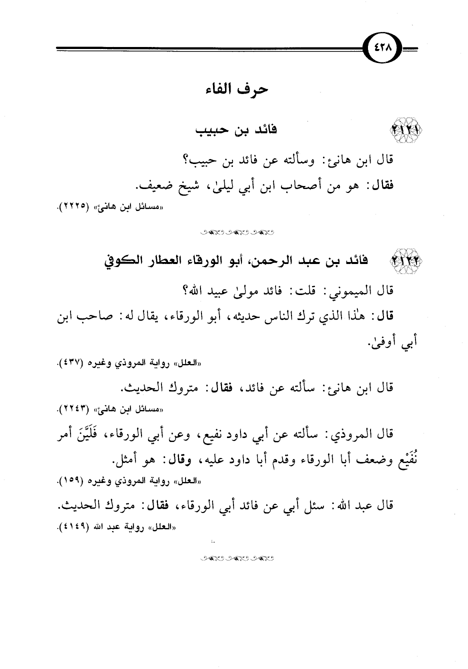 قال ابن هانئ: سألته عن فائد، فقال: متروك الحديث.
