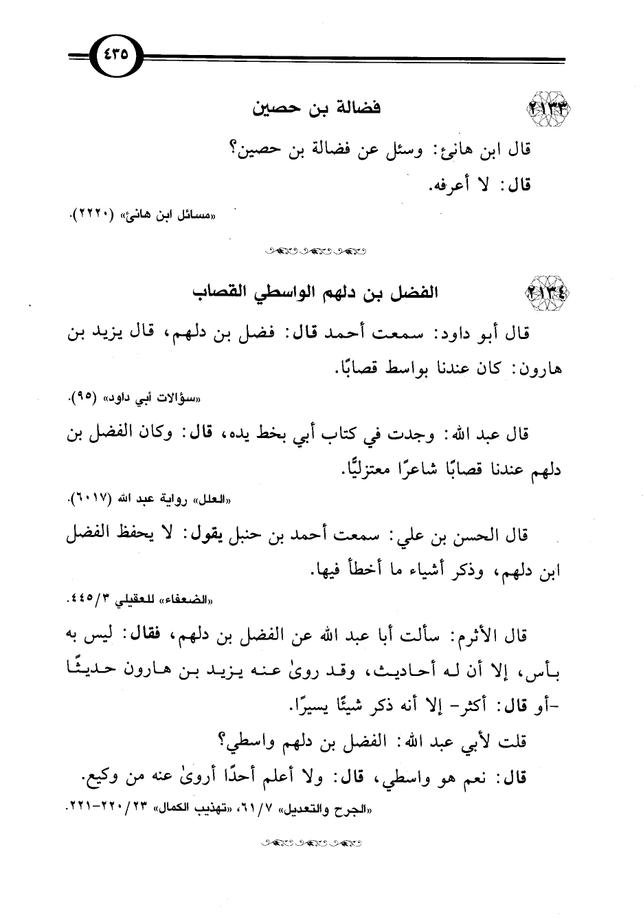 قال أبو داود: سمعت أحمد قال: فضل بن دلهم، قال يزيد بن هارون: كان عندنا بواسط قصابًا.