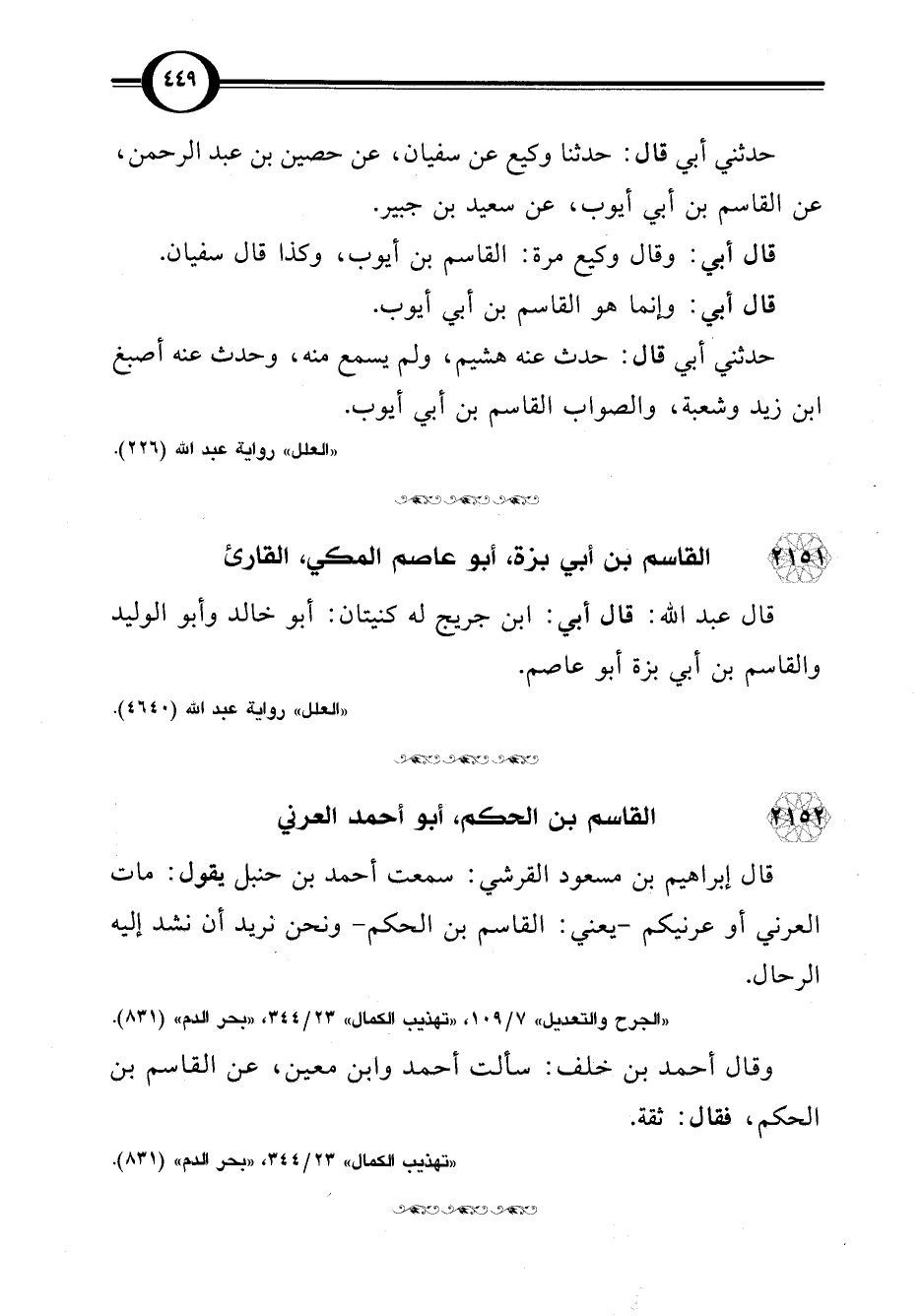"الجرح والتعديل" 7/ 109، "تهذيب الكمال" 23/ 344، "بحر الدم" (831).