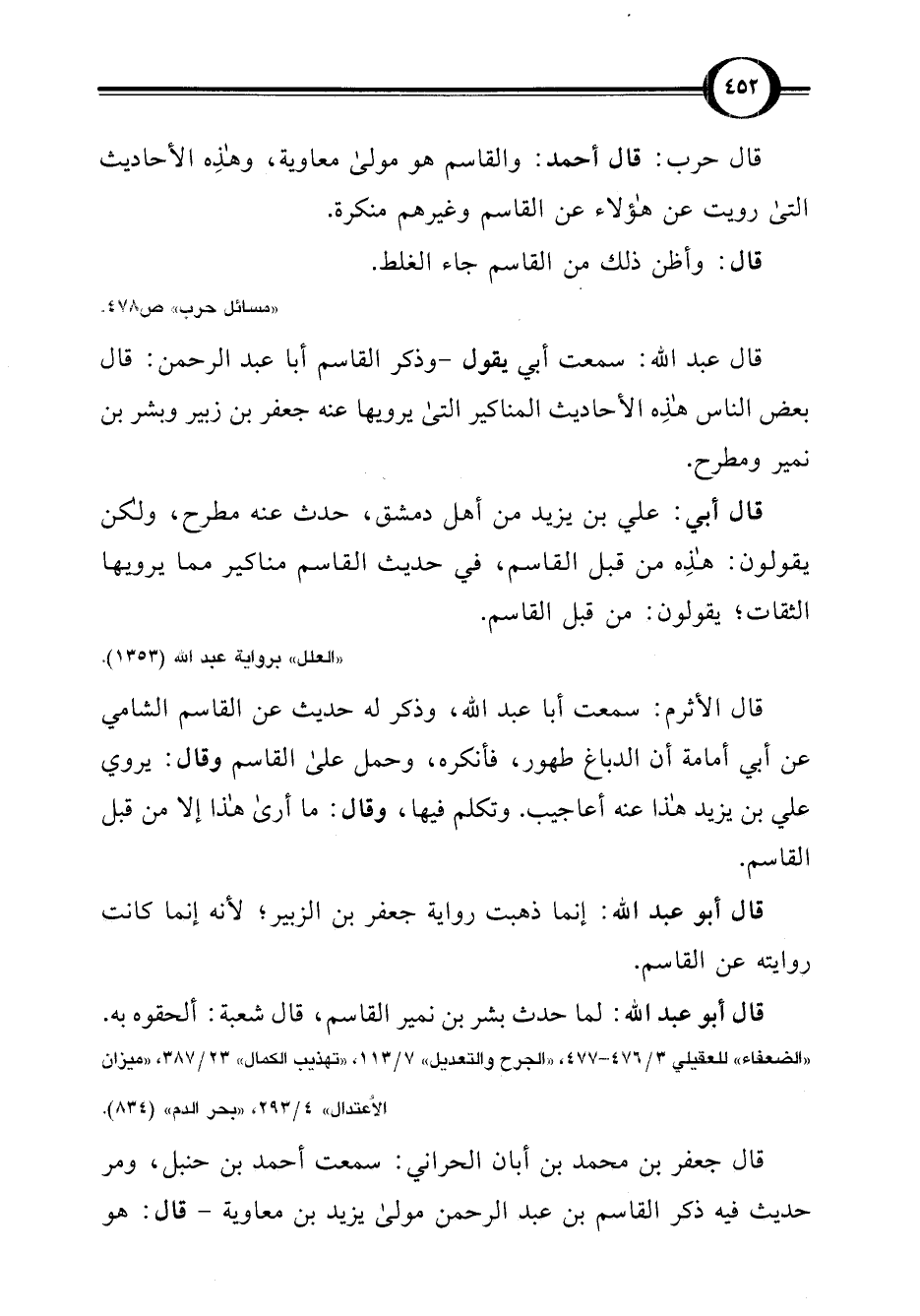 قال حرب: قال أحمد: والقاسم هو مولى معاوية، وهذِه الأحاديث التى رويت عن هؤلاء عن القاسم وغيرهم منكرة.
