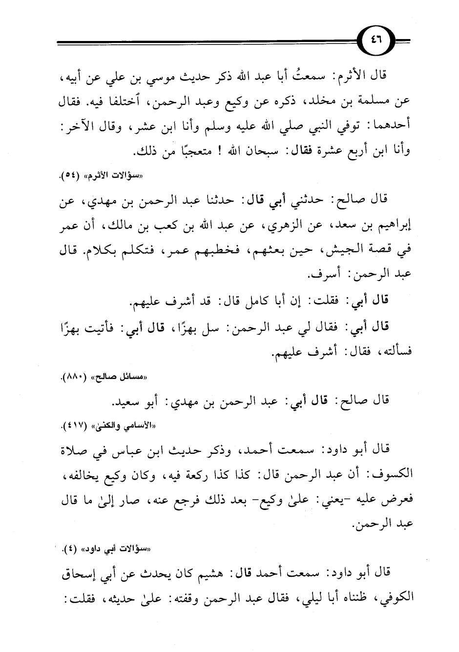 قال صالح: قال أبي: عبد الرحمن بن مهدي: أبو سعيد.