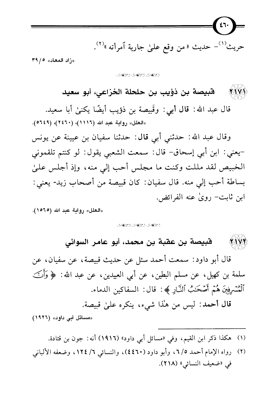 قال أحمد: ليس من هذا شيء، ينكره على قبيصة.